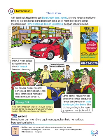 tentang ciptaan kerusi daripada tayar lama. Encik Nazri bercadang untuk