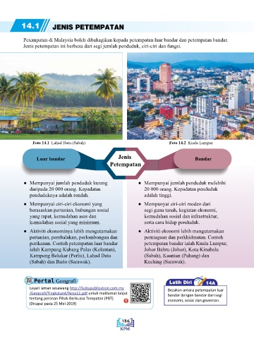 perikanan. Contoh petempatan luar bandar petempatan bandar ialah Kuala Lumpur,