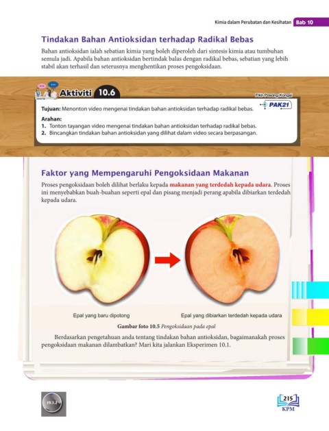 pengoksidaan makanan dilambatkan? Mari kita jalankan Eksperimen 10.1.