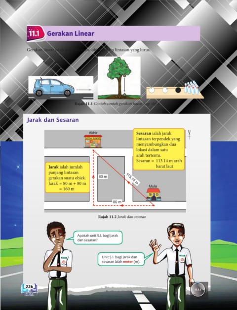 Rajah 11.1 Contoh-contoh gerakan linear bagi objek