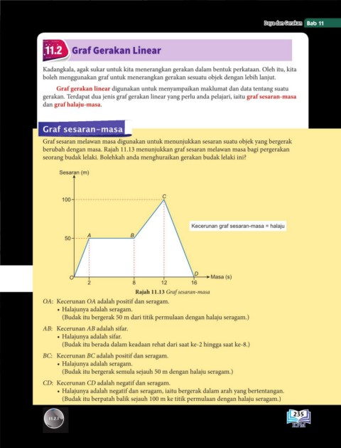 berubah dengan masa. Rajah 11.13 menunjukkan graf sesaran melawan masa bagi pergerakan