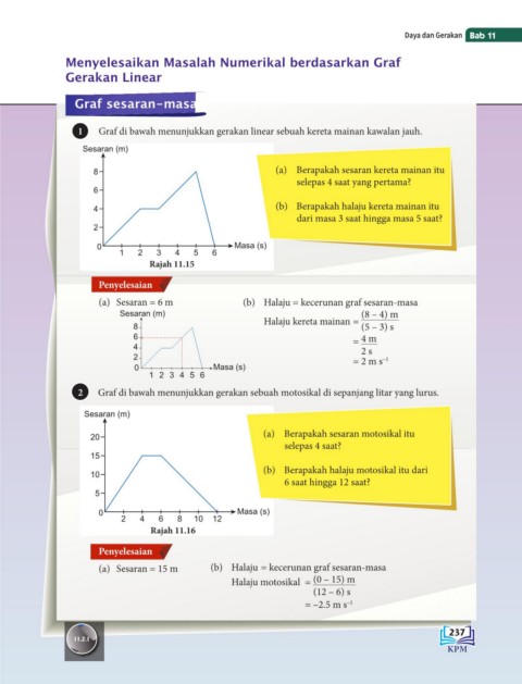 1 Graf di bawah menunjukkan gerakan linear sebuah kereta mainan kawalan jauh.