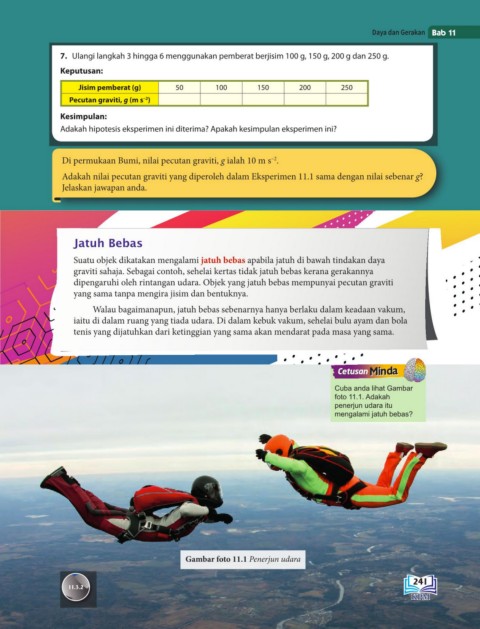 Adakah nilai pecutan graviti yang diperoleh dalam Eksperimen 11.1 sama dengan nilai sebenar g?