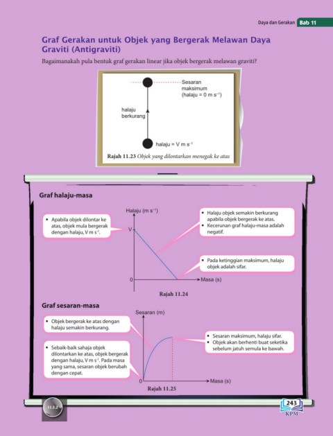 Rajah 11.23 Objek yang dilontarkan menegak ke atas