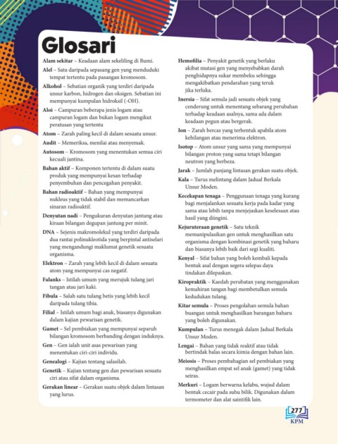 Alam sekitar – Keadaan alam sekeliling di Bumi. Hemofilia – Penyakit genetik yang berlaku