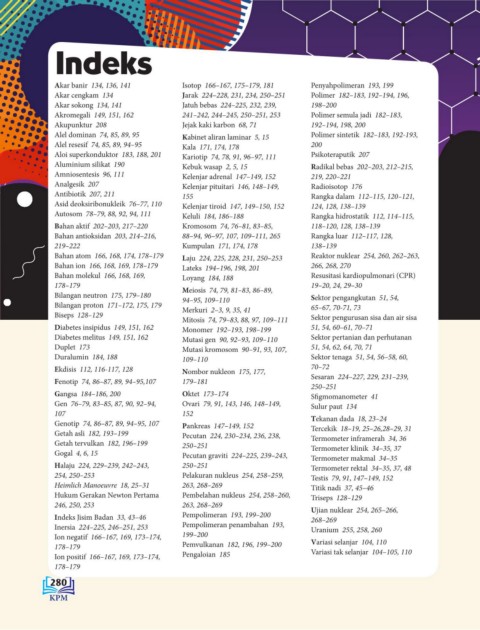 Akar cengkam 134 Jarak 224–228, 231, 234, 250–251 Polimer 182–183, 192–194, 196,