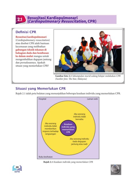 Rajah 2.1 ialah peta bulatan yang menunjukkan beberapa keadaan individu yang memerlukan CPR.