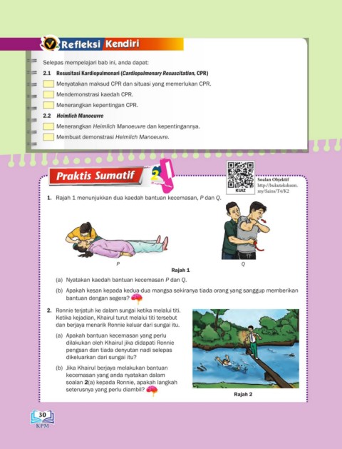 1. Rajah 1 menunjukkan dua kaedah bantuan kecemasan, P dan Q.