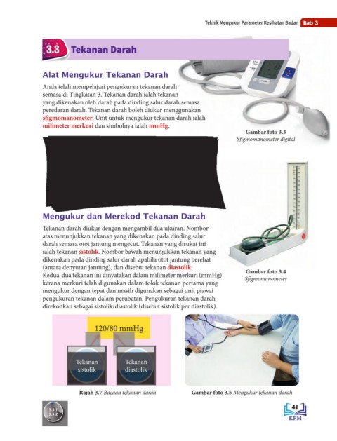 Kedua-dua tekanan ini dinyatakan dalam milimeter merkuri (mmHg) Sfigmomanometer