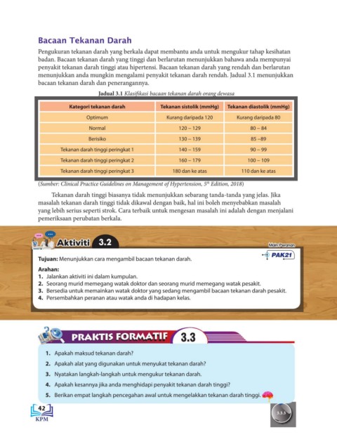 Jadual 3.1 Klasifikasi bacaan tekanan darah orang dewasa