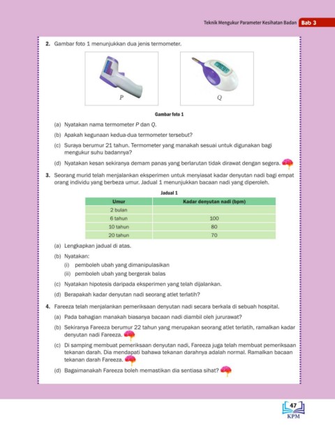 3. Seorang murid telah menjalankan eksperimen untuk menyiasat kadar denyutan nadi bagi empat