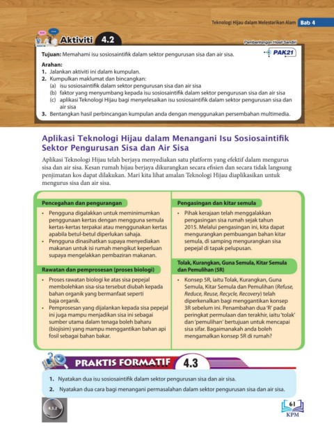 Tujuan: Memahami isu sosiosaintifik dalam sektor pengurusan sisa dan air sisa. PAK21