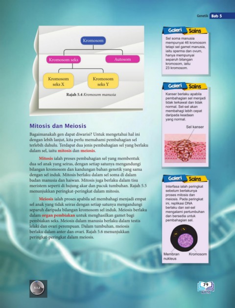 Rajah 5.4 Kromosom manusia Kanser berlaku apabila