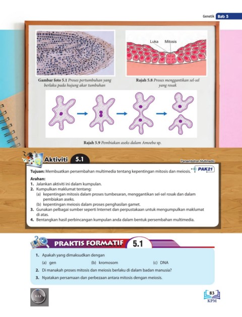 Gambar foto 5.1 Proses pertumbuhan yang Rajah 5.8 Proses menggantikan sel-sel