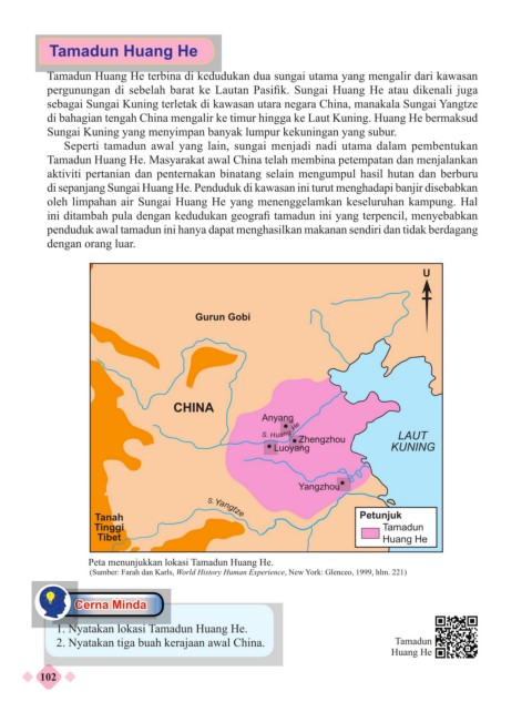 1. Nyatakan lokasi Tamadun Huang He.
