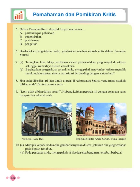 Pantheon, Rom, Itali. Bangunan Sultan Abdul Samad, Kuala Lumpur.