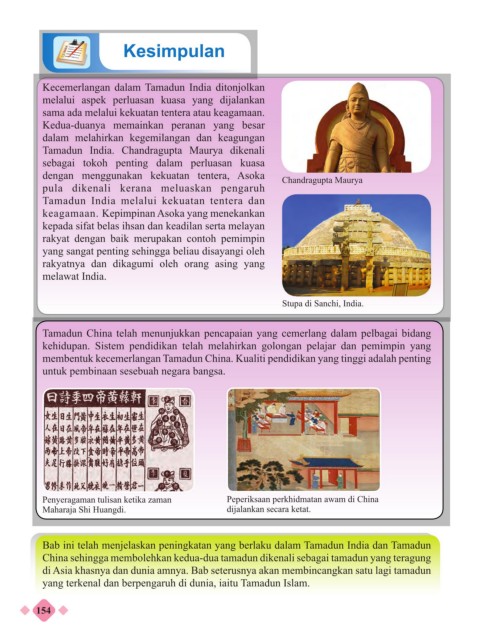 Bab ini telah menjelaskan peningkatan yang berlaku dalam Tamadun India dan Tamadun