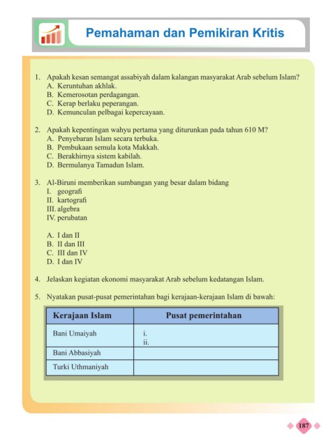 1. Apakah kesan semangat assabiyah dalam kalangan masyarakat Arab sebelum Islam?