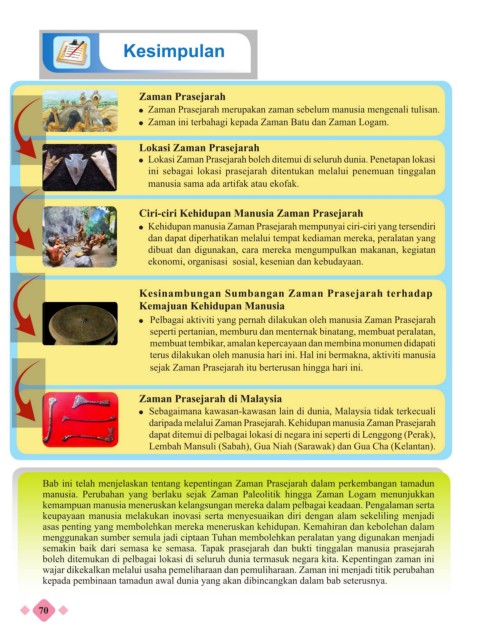 Bab ini telah menjelaskan tentang kepentingan Zaman Prasejarah dalam perkembangan tamadun