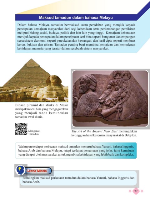 kertas, lukisan dan ukiran. Tamadun penting bagi membina kemajuan dan kemodenan