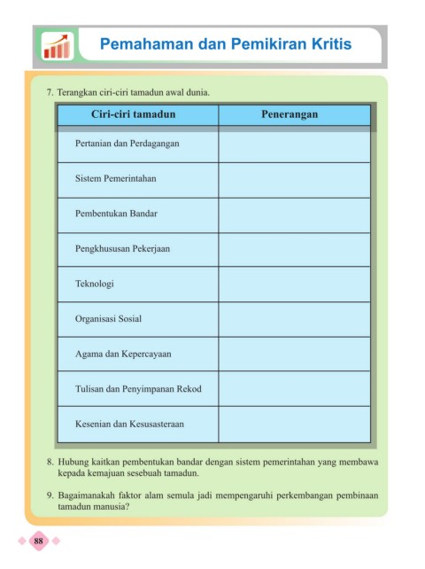 7. Terangkan ciri-ciri tamadun awal dunia.