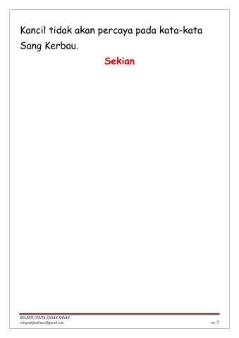 Kancil tidak akan percaya pada kata-kata Sang Kerbau. Sekian KOLEKSI CERITA KANAK-KANAK rohayatifasilinus@gmail.com ms 7