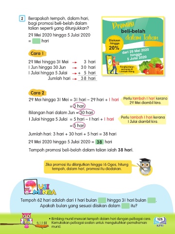 • Bimbing murid mencari tempoh dalam hari dengan pelbagai cara. 125
