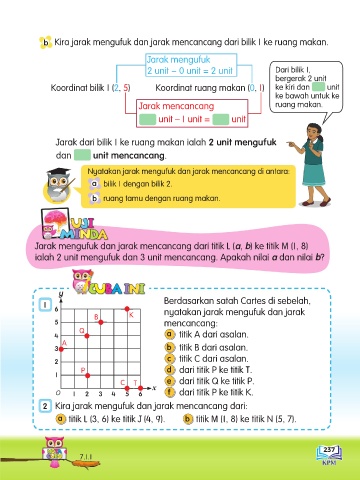 Koordinat bilik 1 (2, 5) Koordinat ruang makan (0, 1) ke kiri dan unit