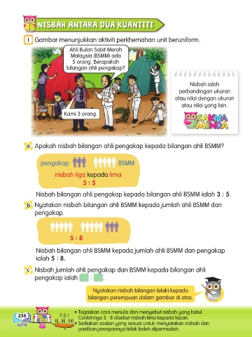 238 7.2.1 Contohnya 5 : 8 disebut nisbah lima kepada lapan.