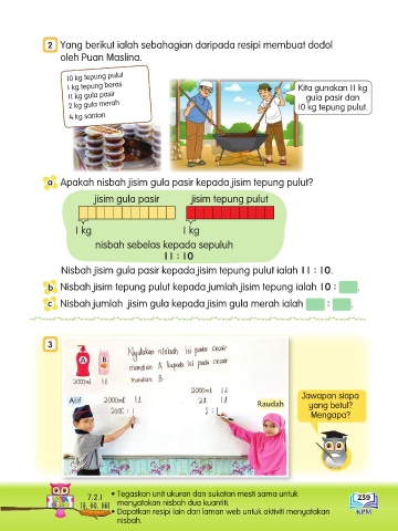 c Nisbah jumlah jisim gula kepada jisim gula merah ialah : .