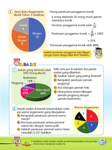 3 Jenis Buku Kegemaran Hitung peratusan penggemar komik.