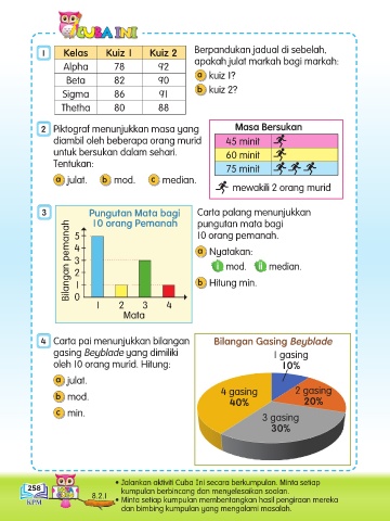 1 Kelas Kuiz 1 Kuiz 2 Berpandukan jadual di sebelah,