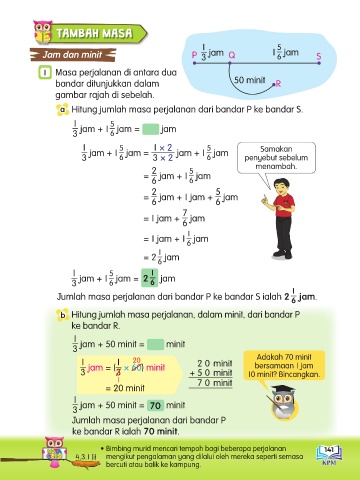 b Hitung jumlah masa perjalanan, dalam minit, dari bandar P