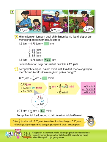 = (0.75 × 60) minit 4 jam = ( × 60) minit + 1 5 minit