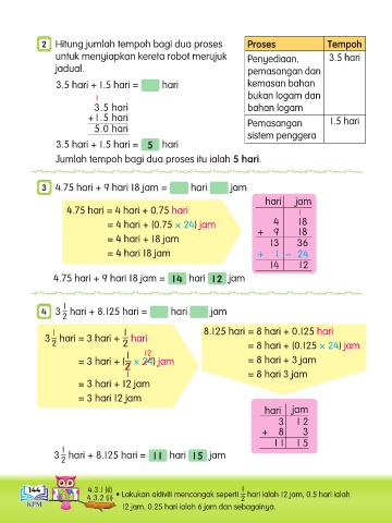 144 4.3.1 (ii) • Lakukan aktiviti mencongak seperti hari ialah 12 jam, 0.5 hari ialah