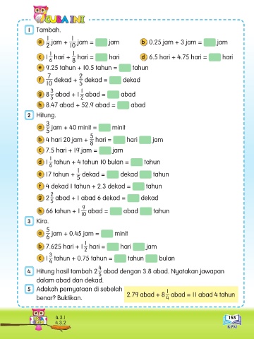 4 Hitung hasil tambah 2 abad dengan 3.8 abad. Nyatakan jawapan