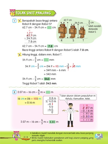 Beza tinggi antara Robot R dengan Robot S ialah 7.8 cm.