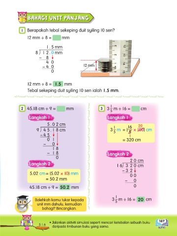 • Jalankan aktiviti simulasi seperti mencari ketebalan sebuah buku 187