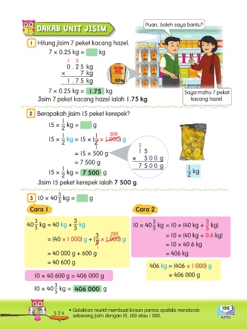 7 × 0.25 kg = 1.75 kg Saya mahu 7 peket
