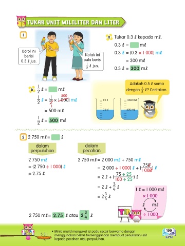 TUKAR UNIT MILILITER DAN LITER