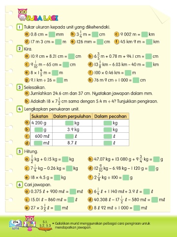 214 5.1, • Galakkan murid menggunakan pelbagai cara pengiraan untuk