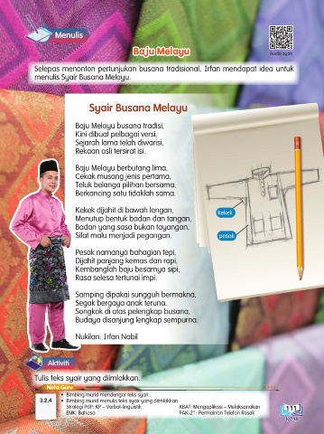 3.2.4 • Bimbing murid menulis teks syair yang diimlakkan.