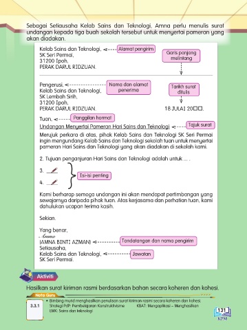 Sebagai Setiausaha Kelab Sains dan Teknologi, Amna perlu menulis surat