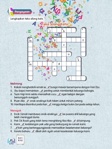 1. Kakak menghadiahi emak se___ bunga mawar bersempena dengan Hari Ibu.