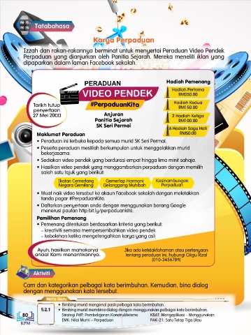 • Peserta peraduan mestilah berkumpulan untuk menggalakkan murid