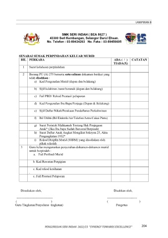 SENARAI SEMAK PERPINDAHAN KELUAR MURID