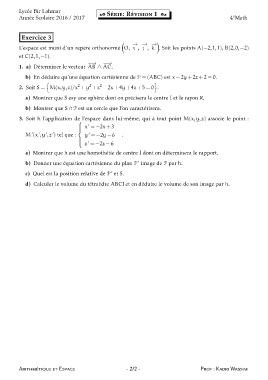 Arithm´ etique et Espace - 2/2 - Prof : Kadri Wassim