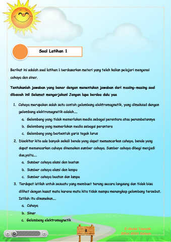 1. Cahaya merupakan salah satu contoh gelombang elektromagnetik, yang dimaksud dengan