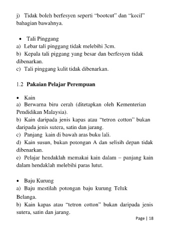 j) Tidak boleh berfesyen seperti “bootcut” dan “kecil”