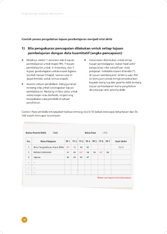Contoh proses pengolahan tujuan pembelajaran menjadi nilai akhir